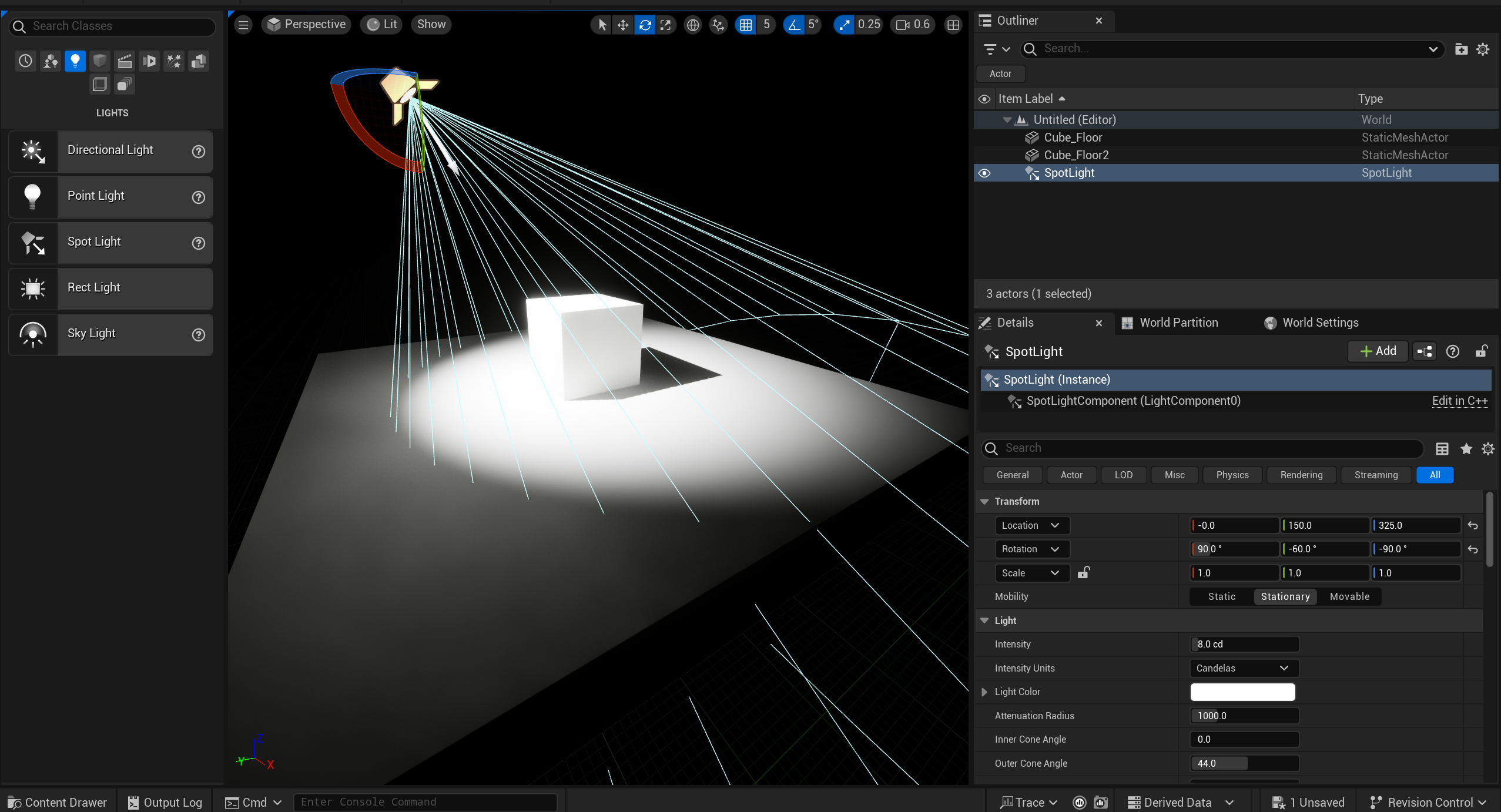 - Unreal 조명 PointLight & SpotLight & Rect Light 등 작동 원리