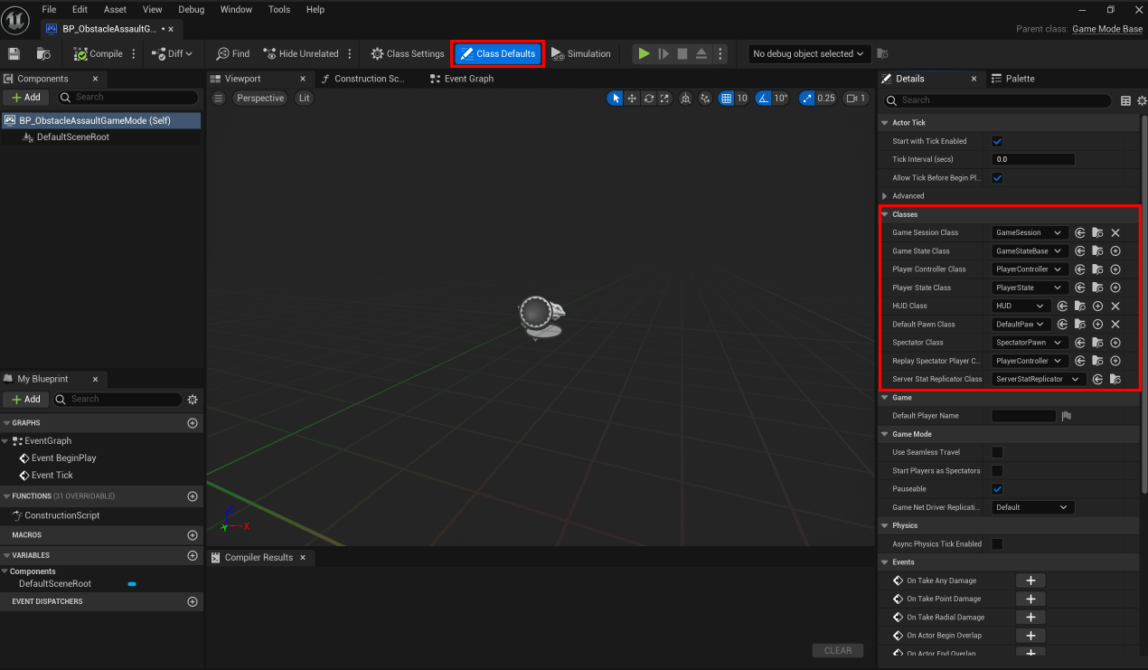 GameMode 블루프린트를 열어서 Class Defaluts창으로 들어가면 우측의 클래스 섹션에서 MainPawn 클래스를 찾아서