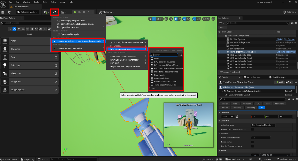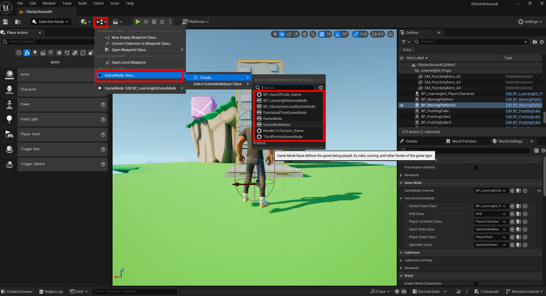 1. GameMode -> Create -> GameModeBase를 클릭하고 경로를 지정해주면 폴더에 생성이 된다.