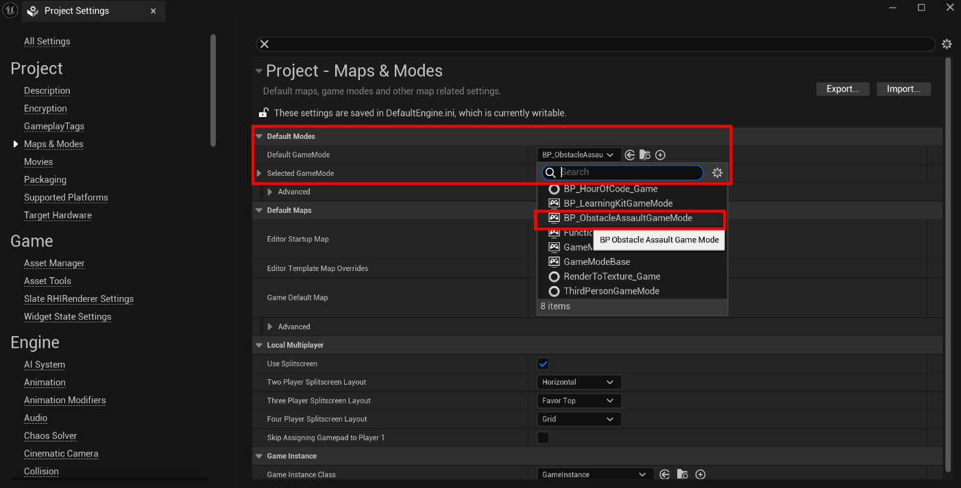 Project Settting은 게임 전체 규칙을 관리하는 게임 모드를 지칭