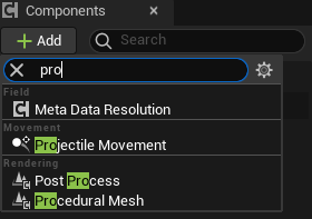 - 절차적 메시를 사용하기 위해서는 액터 블루프린트를 생성, 컴포넌트에서 절차적 메시 컴포넌트를 추가
