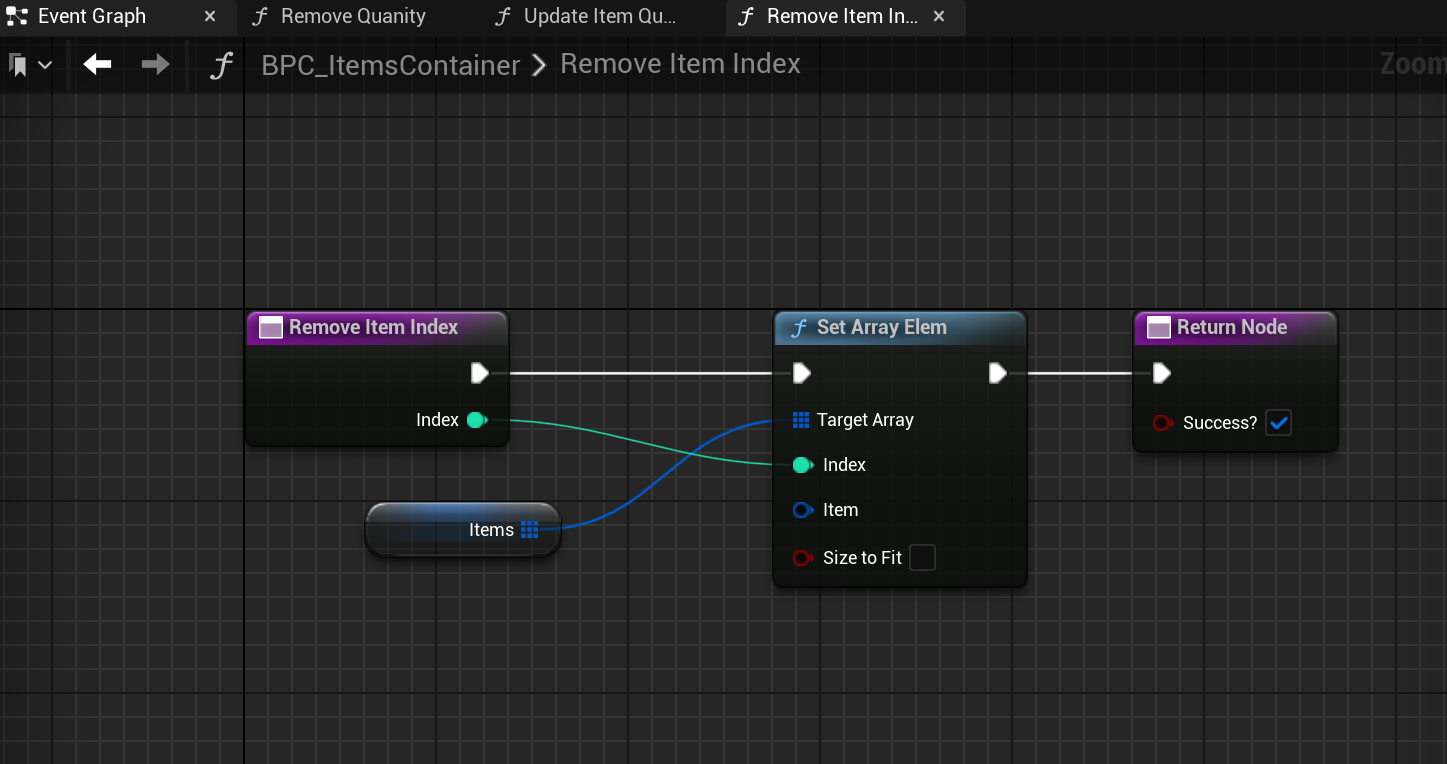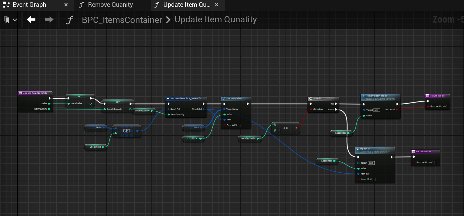 - 지정된 변수값 및 작성된 Datatalble 및 구조체 기반으로 Remove Quantity Function과 UpdateState Instanct Function 제작