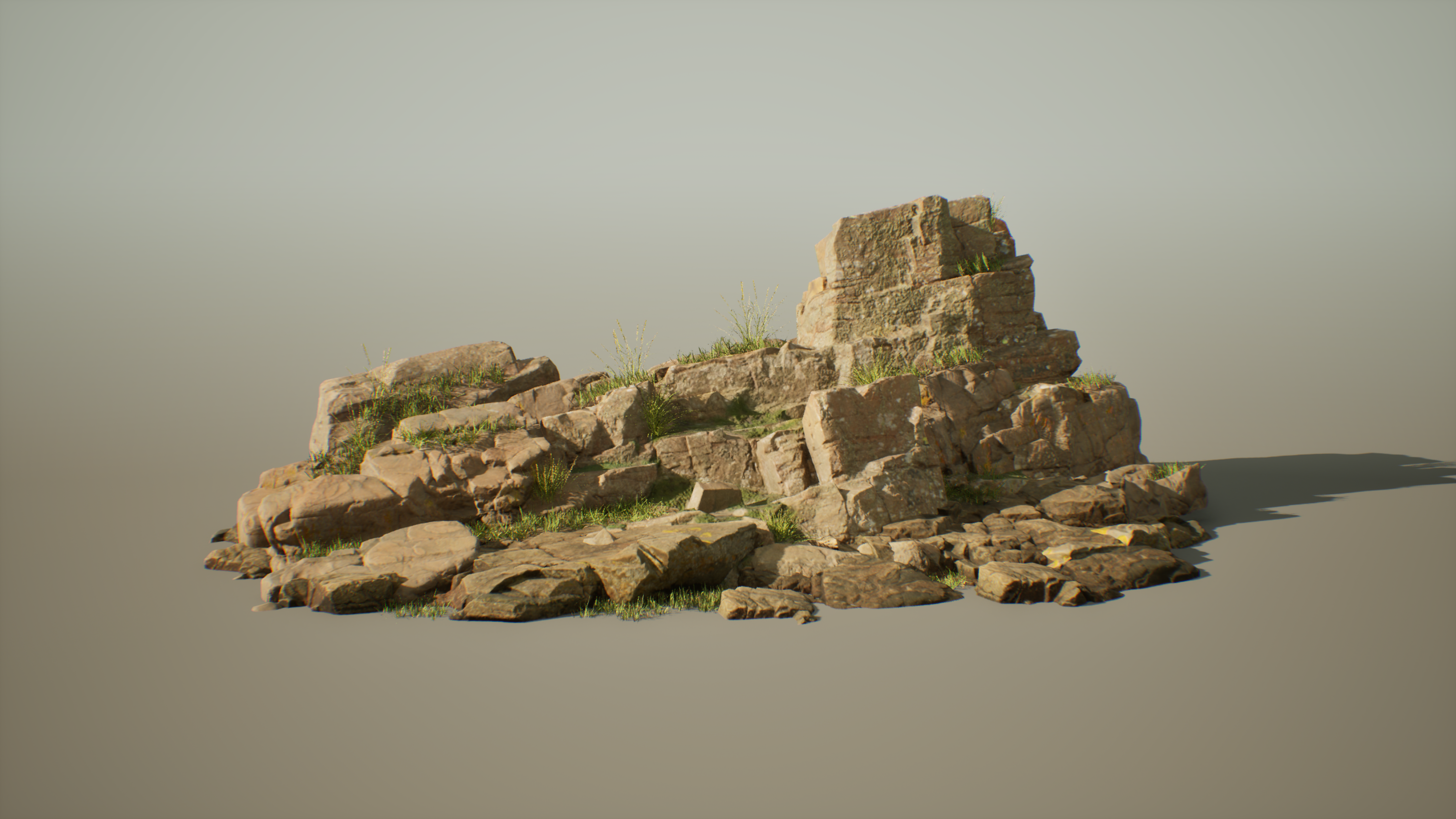 이번 프랍 렌더링으로 선택한 소재는 자연물 입니다. 보통 용어를 선정할 때 편리하게 구분하고자하는 목적으로 사람이 만든 것과 아닌 소재들로 구분하곤 하는데, 인공물(Manmade)과 자연물(Nature Object)라는 표현을 사용합니다. 조금 세부적으로 파고 들자면 자연물 중에서도 돌과 같은 오브젝트에서 Boulder 소재를 메인으로 삼았습니다. 그래서 이번에 프랍 렌더링과 관련된 주제는 Nature 중에서도 Boulder가 되겠습니다. 완성된 이미지는 다음과 같습니다.