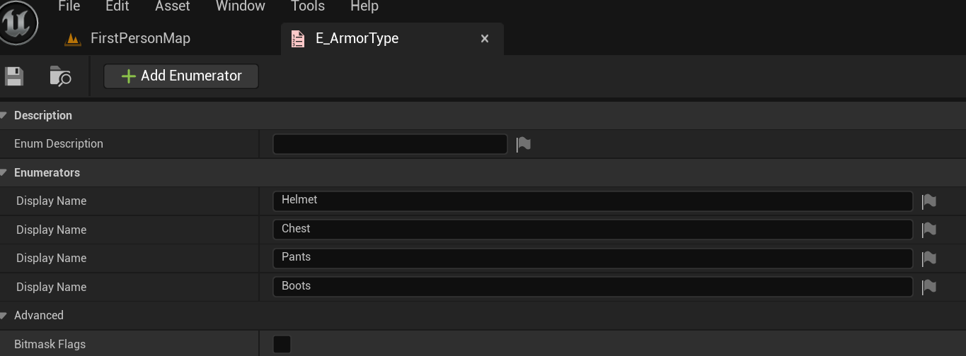 또한 개별 아이템에 이러한 기능들을 일일이 만들어주고, 해당 장착 아이템인지 판별하는 과정을 넣어주면 너무 일이 많아지고 번거로워지게 됩니다. 언리얼 엔진에서는 이런 요소들은 구분하는 과정으로 Enum과 DataTable 및 Blueprint Interface라는 개념을 사용하여 블루프린트 클래스와 그 자손을 장착 아이템으로 인식 할 것인지 소비아이템으로 구분할 것인지와 같은 카테고리 역할을 맡게 할 수 있습니다. 메인 캐릭터의 EventGraph에서 해당 요소들을 사용하여 Armor 역할을 하는 요소인지 판별하는 로직이 구현 되게 됩니다.